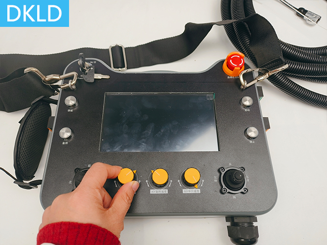 • 3个双轴摇杆+8个按键+1个两档旋转开关+1个5档旋转开关7寸触摸屏平板型工业无线遥控器